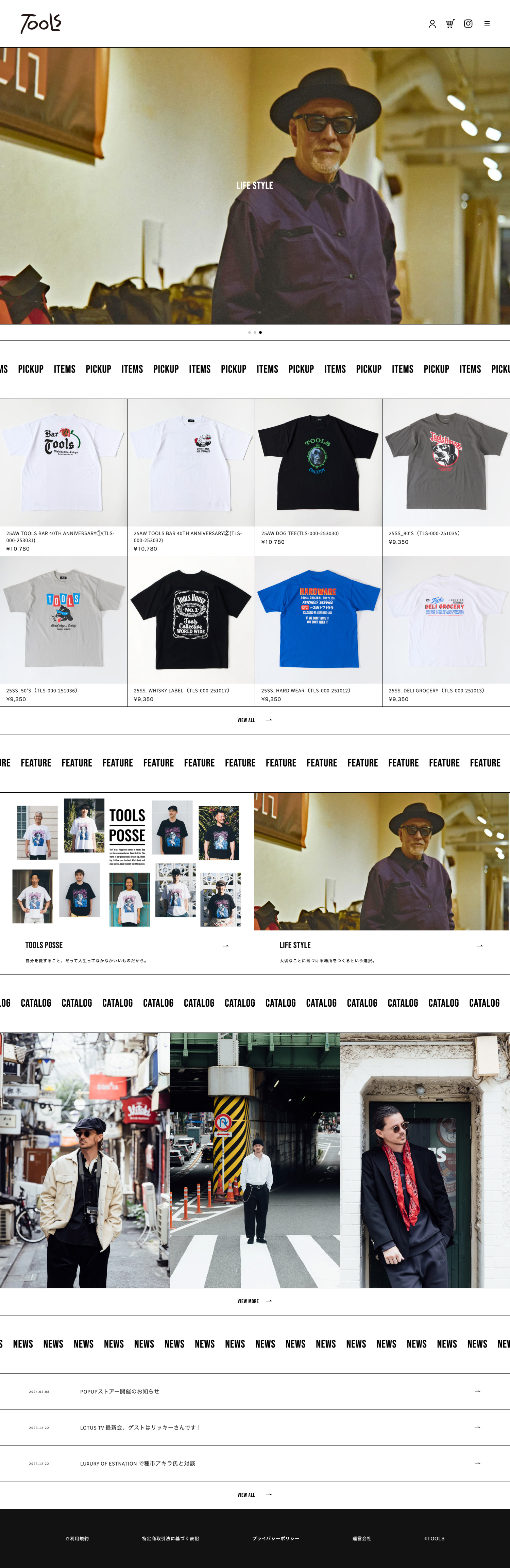 アパレルブランドTOOLSのWEBサイトを作成させていただきました。