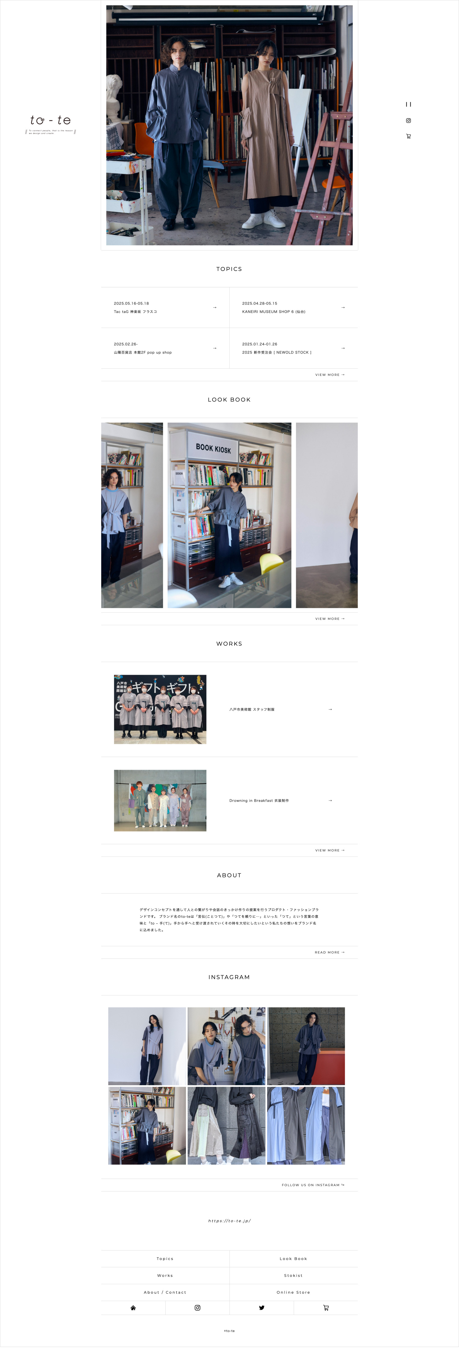 プロダクトファッションブランド「to-te」のブランドサイトを制作させていただきました。