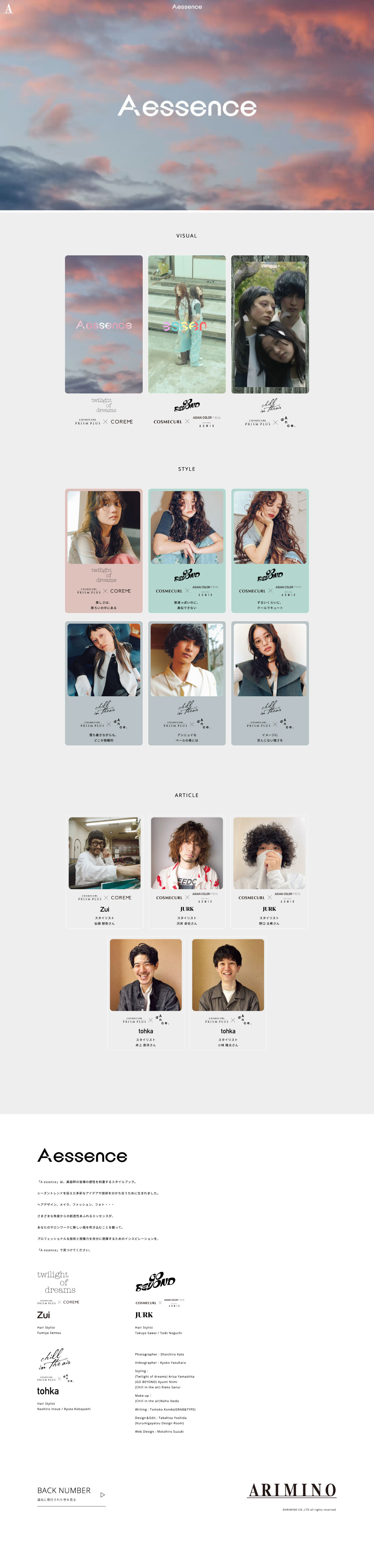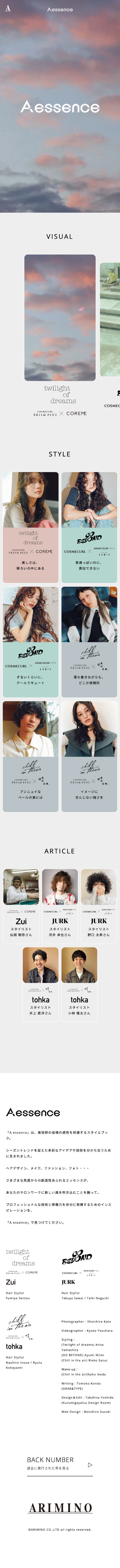 株式会社アリミノ様のA essence特設サイトを制作させていただきました。